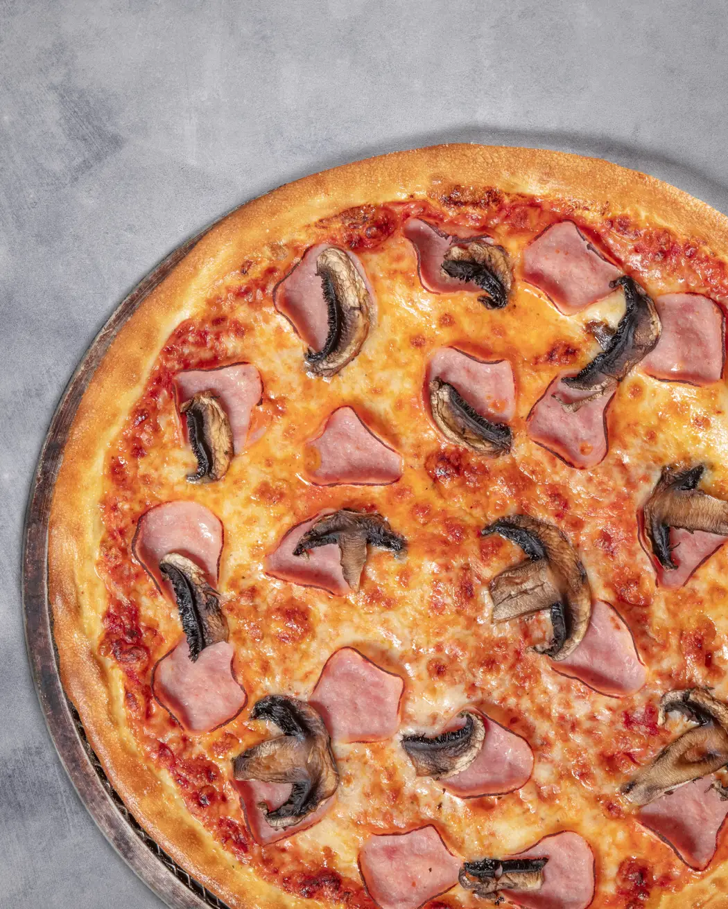 Miðstærð af pizzu með tveimur áleggstegundum.
